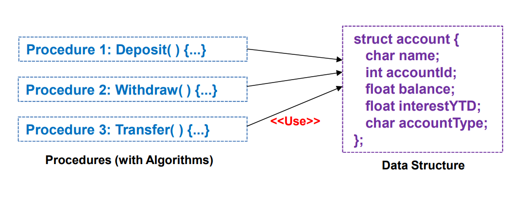 - 절차 지향 프로그래밍에서 중요한 건 순서와 변경값이다. 이에 따라 알고리즘과 데이터 구조가 중요해진다.