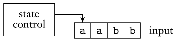 - input tape는 input string과 head를 나타내는 arrow를 가지고 있다. arrow를 통해서 다음 읽을 input symbol을 가리킨다.