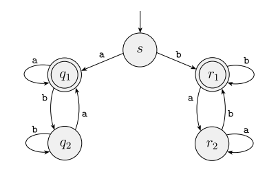 - M4 = ({s, q1, q2, r1, r2}, {a, b}, δ, s, {q1, r1})