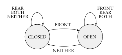 - CLOSED 상태에서 OPEN으로 가는 상태는 앞에 사람이 있는 FRONT상태밖에 없다.