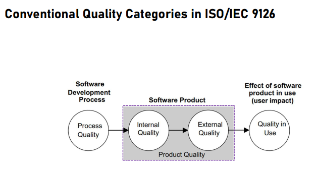 Quality에는 Internal Quality와 External Quality가 있다. Process Quality를 통해서 개발 조직의 성숙도나 요소들을 점검한다. 그 후 소프트웨어 개발을 거친다.