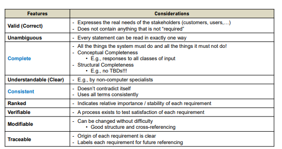 규명된 요구사항은 Complete와 Consistenet(C&C)를 완수해야한다.
