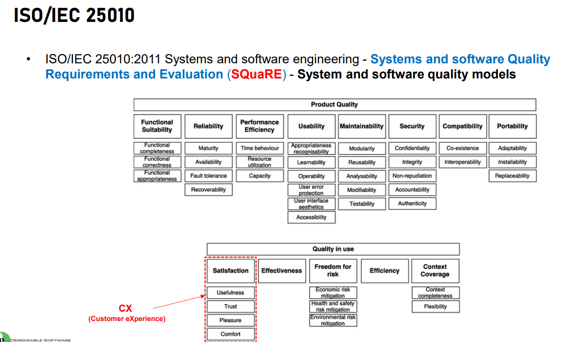 System and sofrware Quality Requirements and Evaluation(SQuaRE)는 여러가지 PRoduct Quality와 Quality in Use를 정리해 놓은 모델이다.