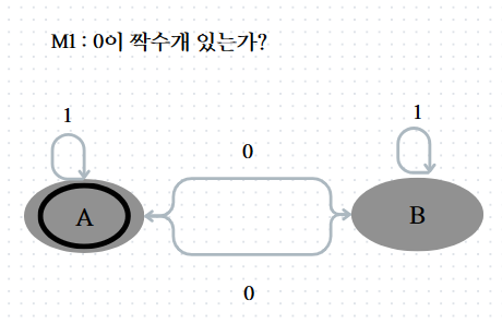 M1은 1의 개수가 짝수인 language를 recognize하는 오토마톤이다.