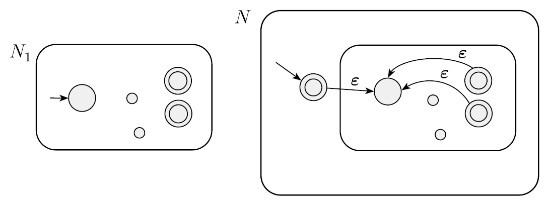 A1를 recognize하는 N1이 있을 때, A1*에 대한 NFA인 N가 있다.