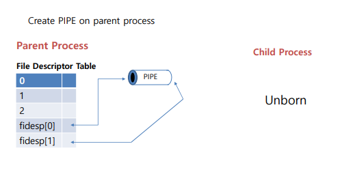 - Parent Process에서 Pipe를 만들어 놓은 상태이다.