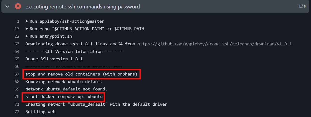 그래서 deploy.sh에 한 줄 추가해서 compose를 통하지 않고 직접 run한 web 컨테이너도 삭제하도록 했다.