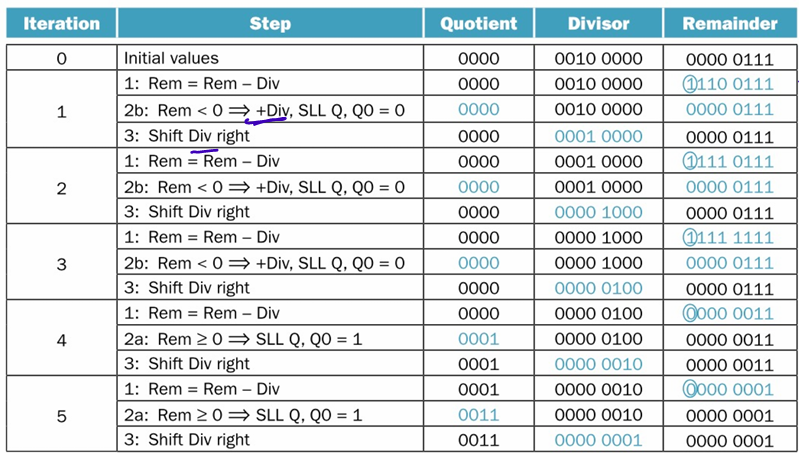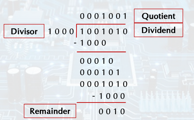 Divisor 0010 0000, Reminder 0000 0111, Quotient 0000