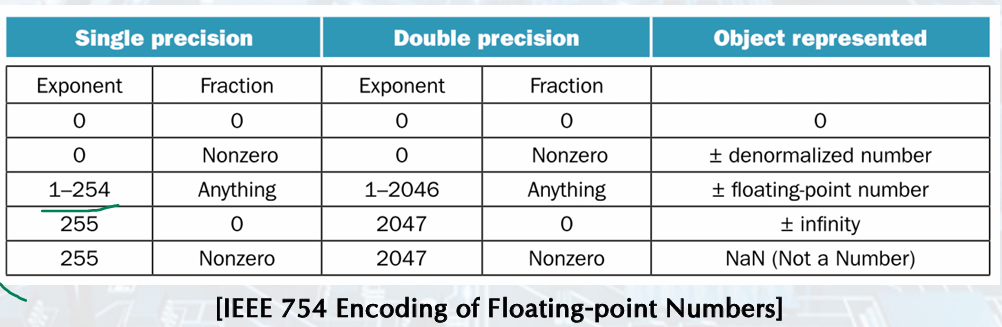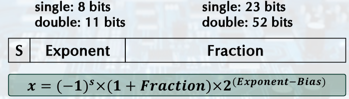 unsigned, Single bias = 127, Double bias = 1023