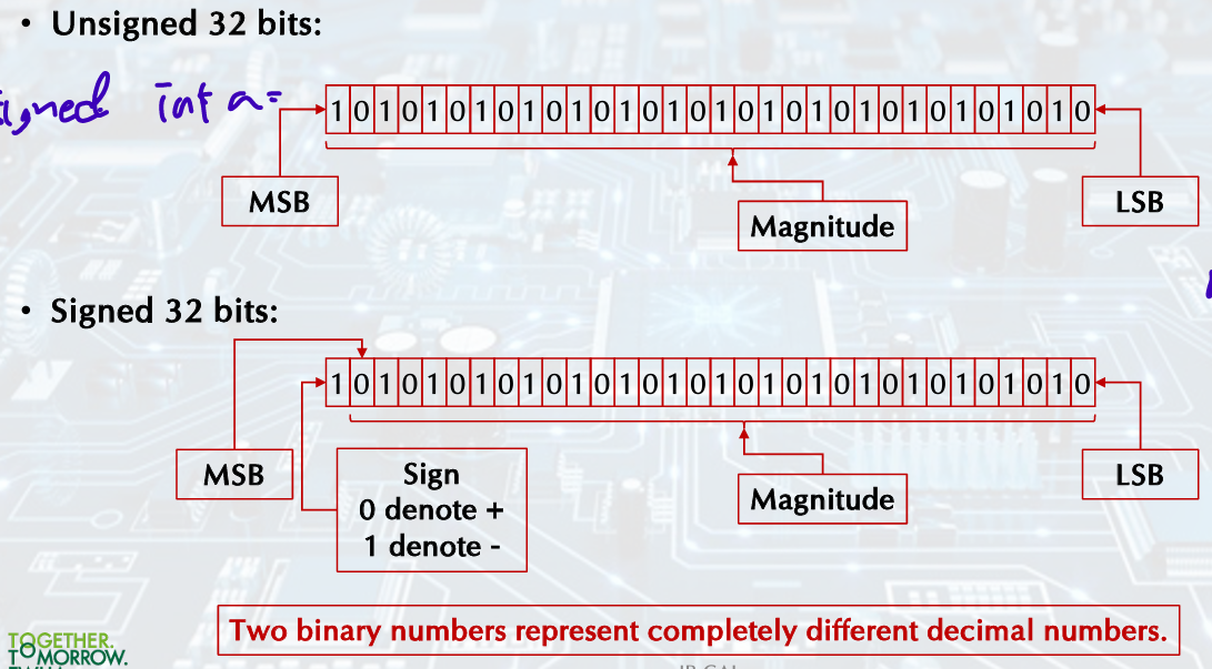 Signed and unsigned integers.