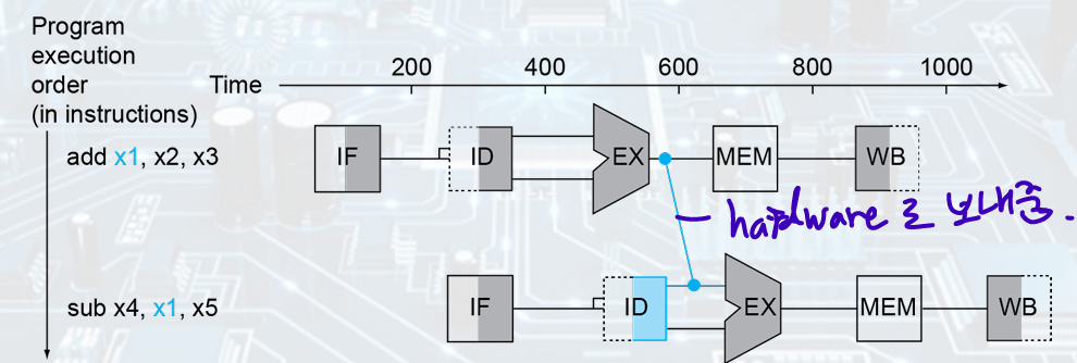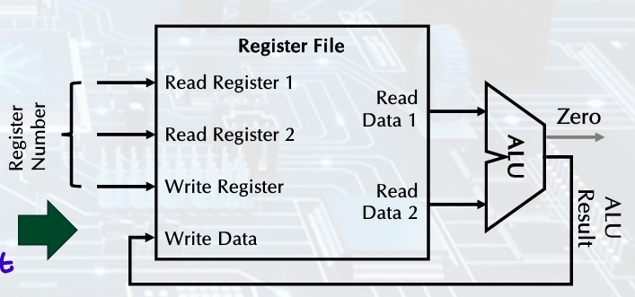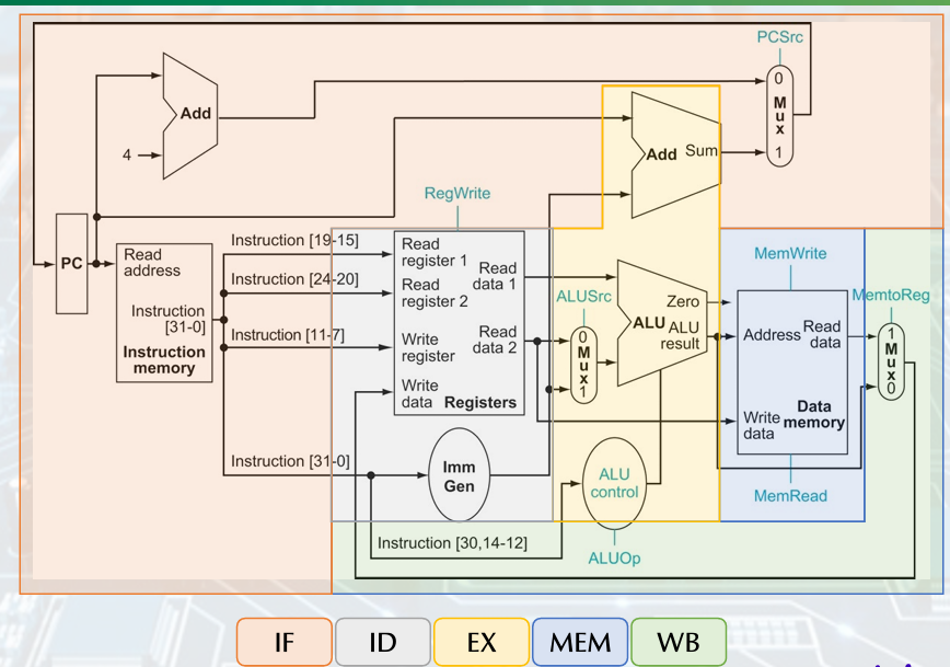 => instruction fetched(PC+4), read 2 registers and set main control, ALU, write result into register