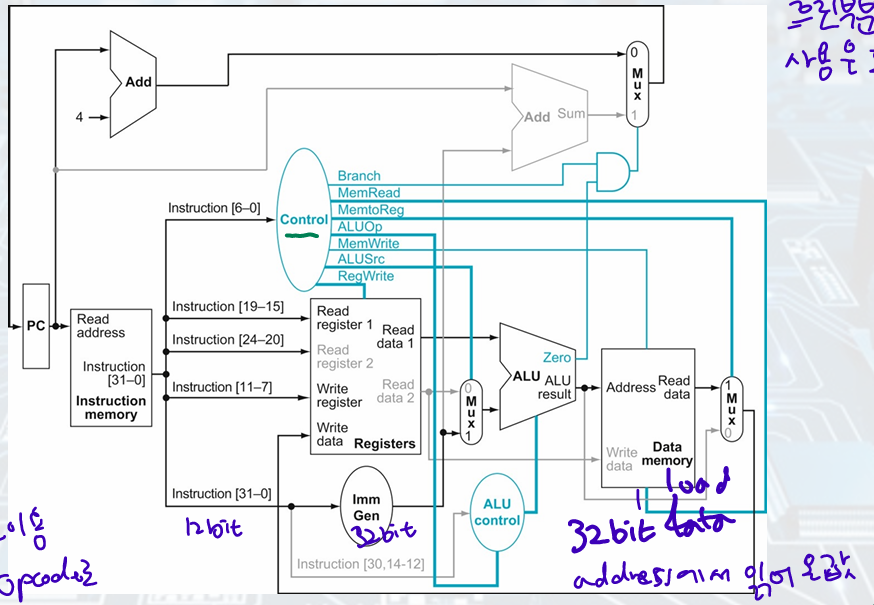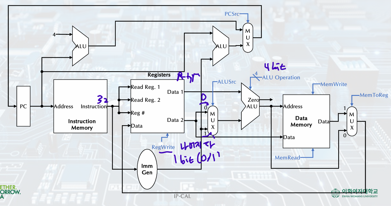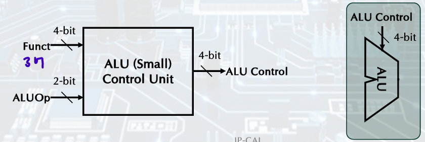 instruction(function field) 4bit, control(ALUOp) 2bit- ALU Control Unit 4bit- ALU