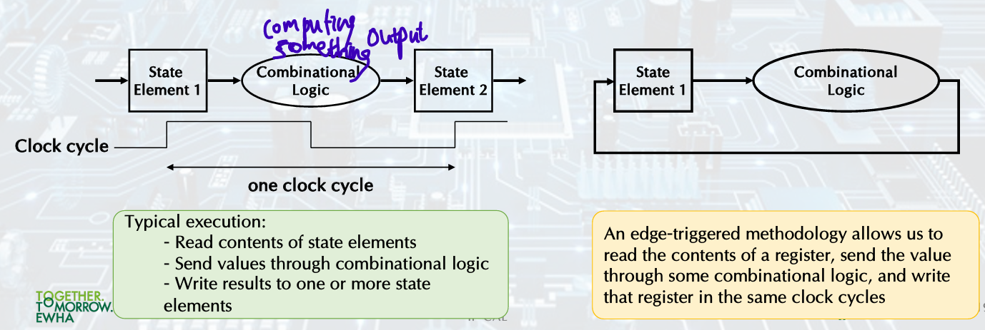 Sequential (state) elements: store information, output depends on previous behavior on circuit too