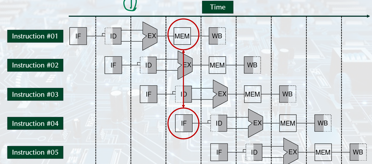 1. An instruction is fetched from the instruction memory, and the PC is incremented.
