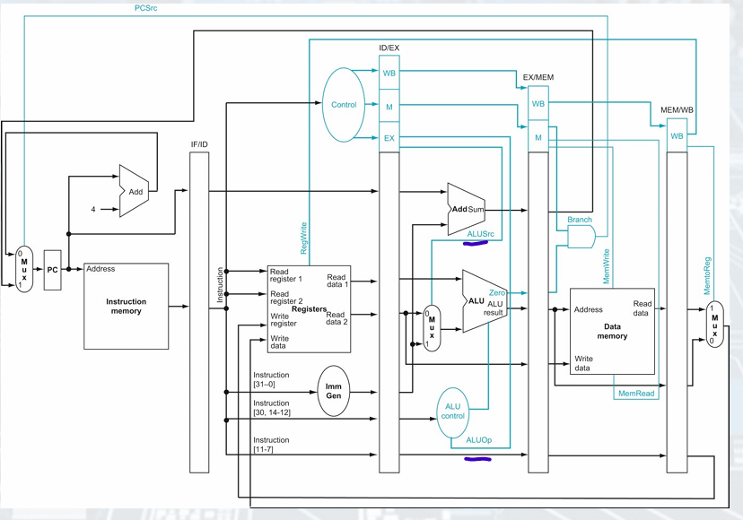 • The write-back stage: Placing the result back into the register file in the middle of the data path.
