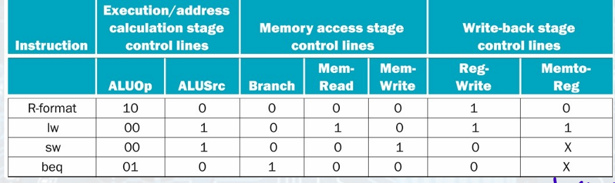 Each control line is associated with a component active in only a single pipeline stage.