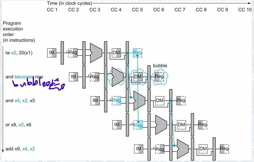 Combining with load(result is in MEM/WB), something must stall the pipeline