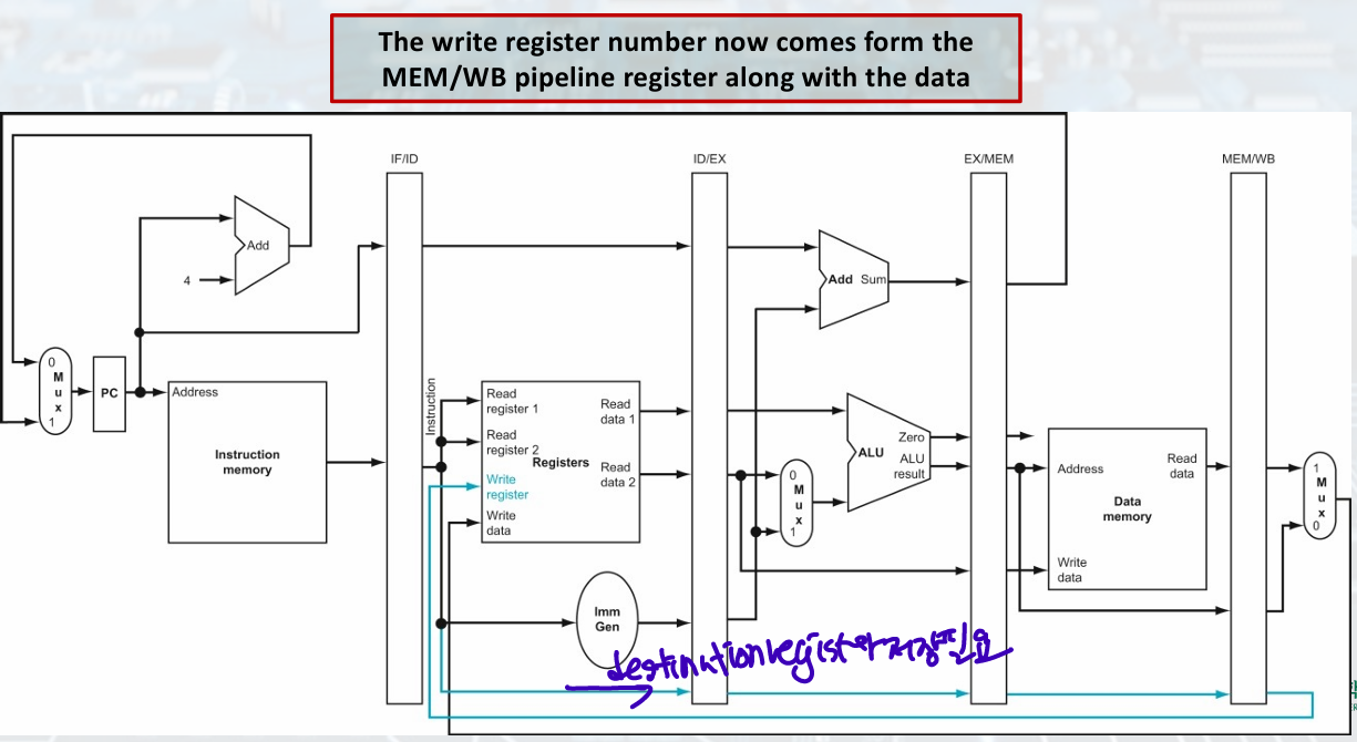 load must pass write register number(destination) from ID/EX to MEM/WB for WB stage