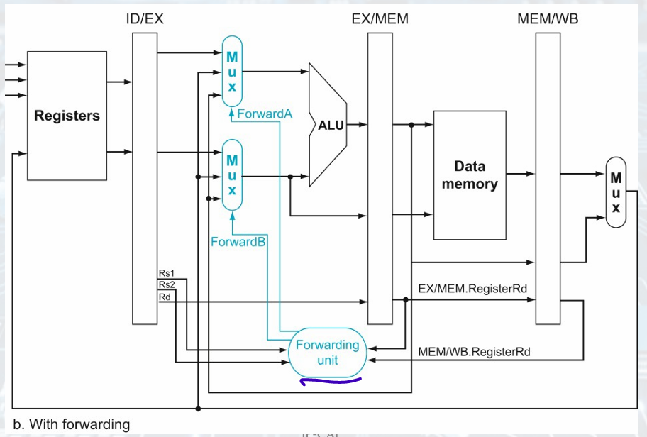 = write, write and read register num same, multiplexor pick from EX/MEM