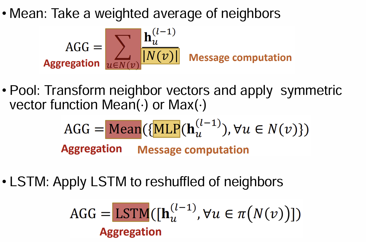 • Example: Sum(⋅), Mean(⋅) or Max(⋅) aggregator