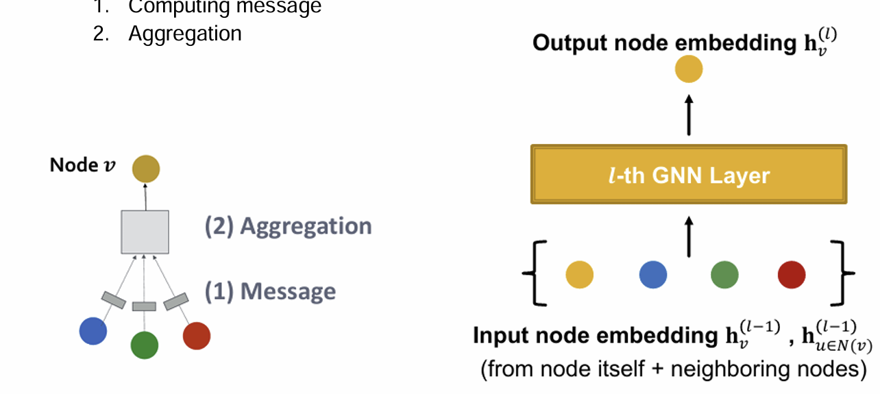 • Intuition: Each node will aggregate the messages from node 𝑣’s
