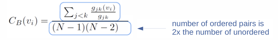 Beetweenness: consider only directed paths, ordered pairs