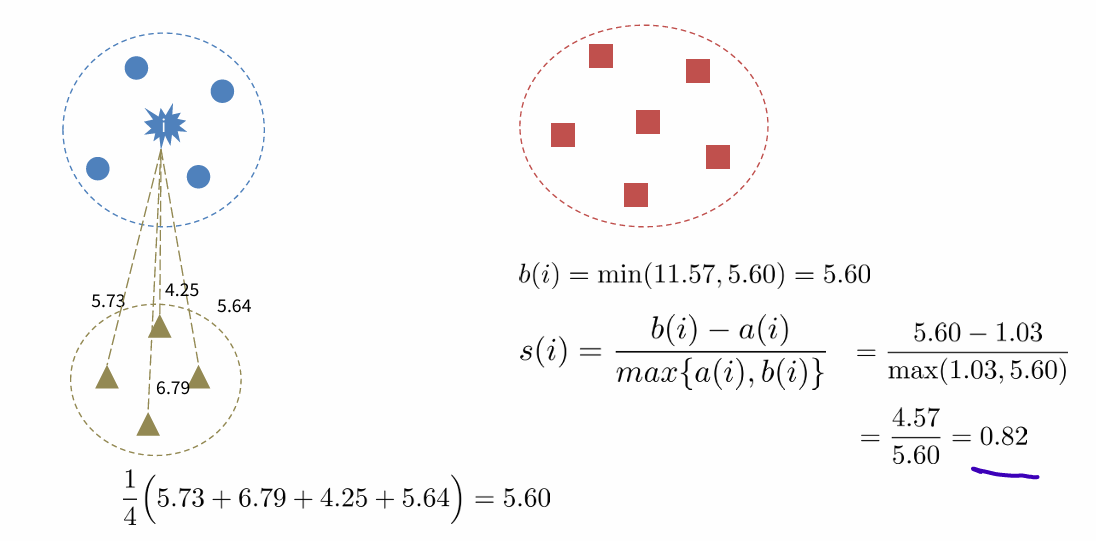 a(i): average distance from i to all in same cluster