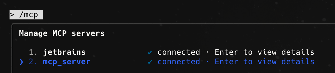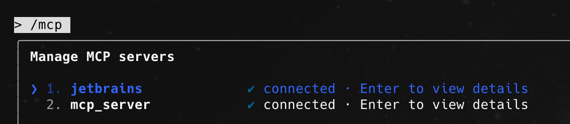 이후, Claude Code에서 /mcp 명령어로 Intellij와의 통합이 가능해지며, cursor 처럼 claude가 코드 파일을 탐색.편집.실행할 수 있게 된다.