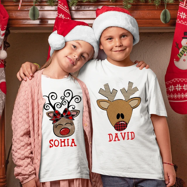 Shirts bearing the child’s name with images such as reindeer, snowflakes, or Santa Clause. The Christmas holiday experience is not complete without matching cute shirts for the child, and these are even more special.
