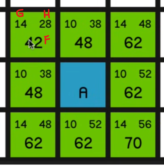 - FCost로 판단 || FCost 같다면 hCost로 판단