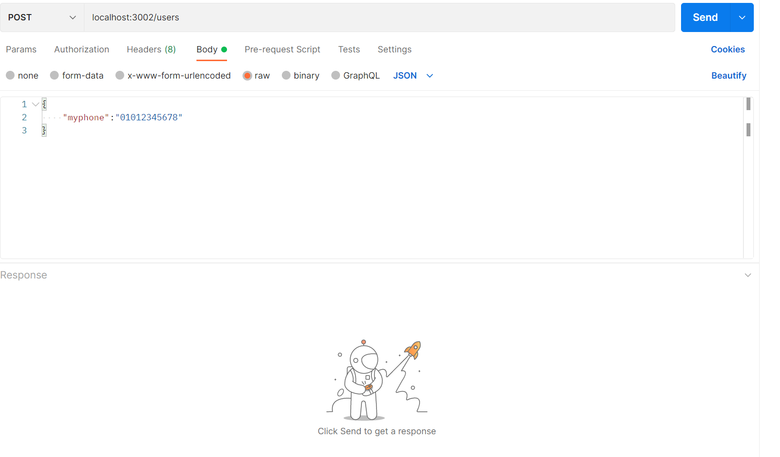Body창을 통해 요청을 하며 response 창을 통해 응답을 받을 수 있다.