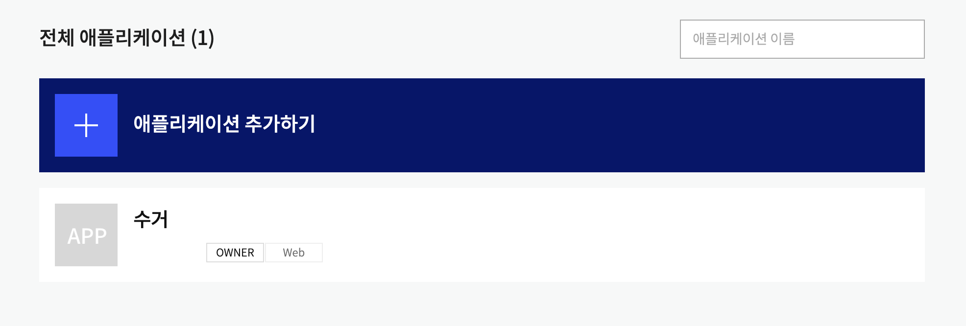 새로운 애플리케이션을 등록한다.