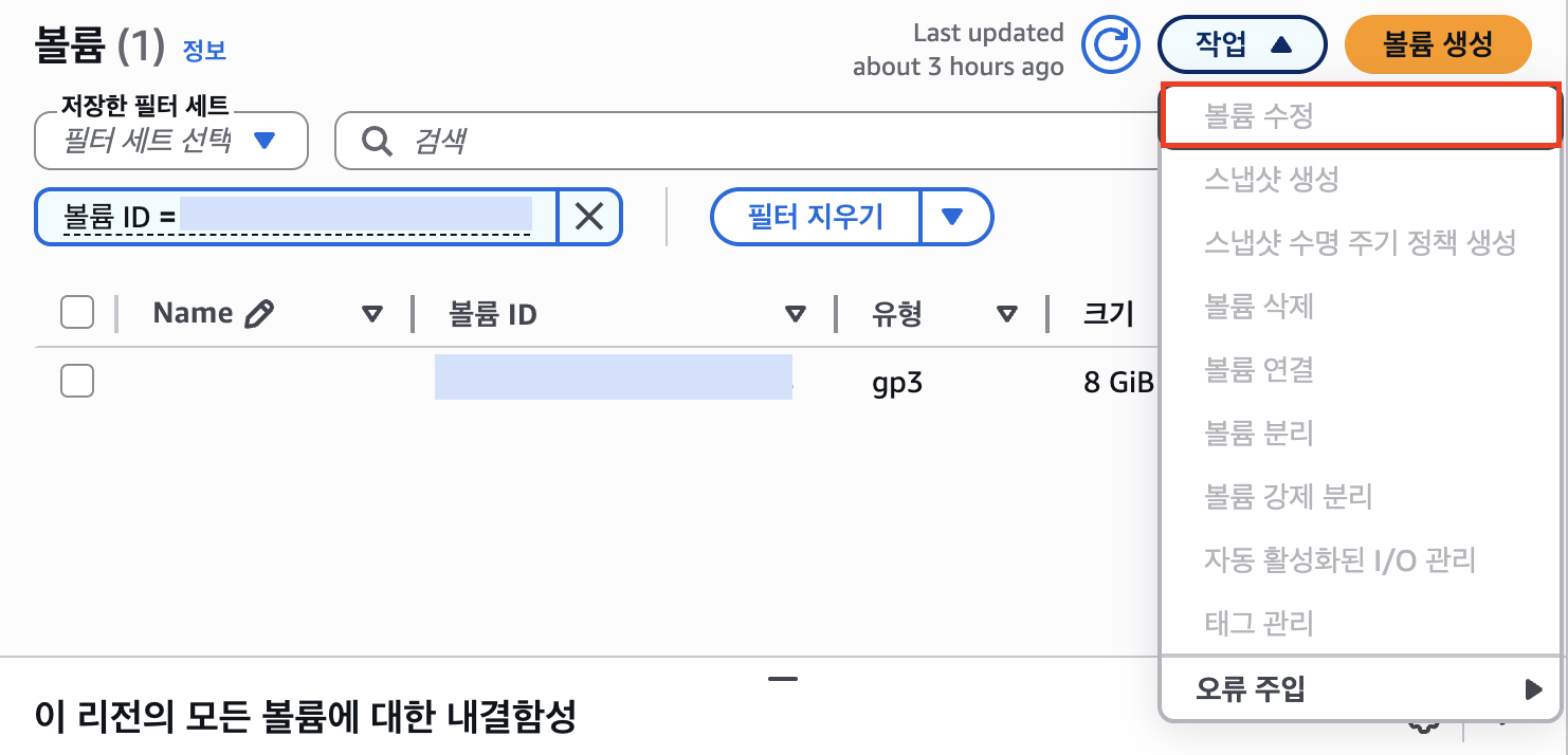 EC2의 인스턴스 스토리지 상세 페이지에서 볼륨을 수정하여 용량을 추가할 수 있다고 했다.
