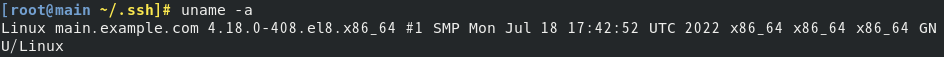 --------------------------------------------------------------- Linux (-s) 커널 이름(kernel name) main.example.com (-n) 호스트 이름(Hostname) 4.18.0-408.el8.x86_64 (-r) 커널 릴리즈 #1 SMP Mon Jul 18 17:42:52 UTC 2022 (-v) 커널 버전 x86_64 (-m) 머신 하드웨어 이름 x86_64 (-p) CPU 종류 x86_64 (-i) 하드웨어 구현 플랫폼 GNU/Linux (-o) 운영체제 종류 ---------------------------------------------------------------