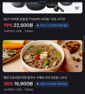 제일 처음 눈길이 가는 상단에 이벤트 배너가 있음 , 배너의 아이콘이 움직임 (클릭 유도)