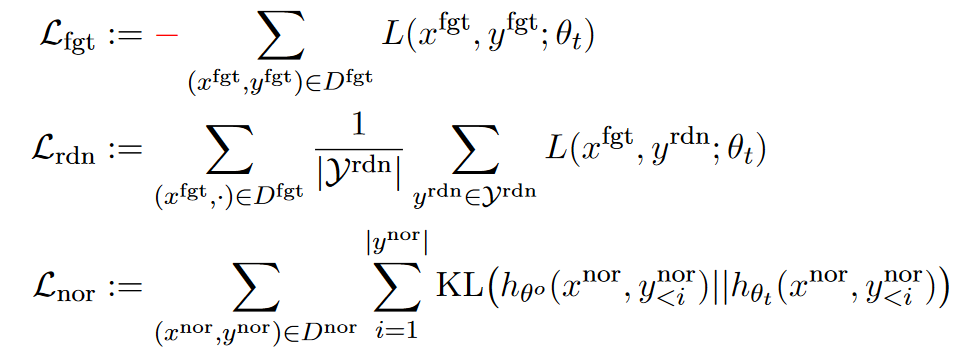Lnor은 retain sample에 대해서는 unlearned model의 파라미터의 distribution이 기존 model parameter의 distribution과 차이가 벌어지지 않도록 파라미터를 업데이트하여 기존 모델의 normal utility를 유지하고자 하는 term으로 이해될 수 있다.