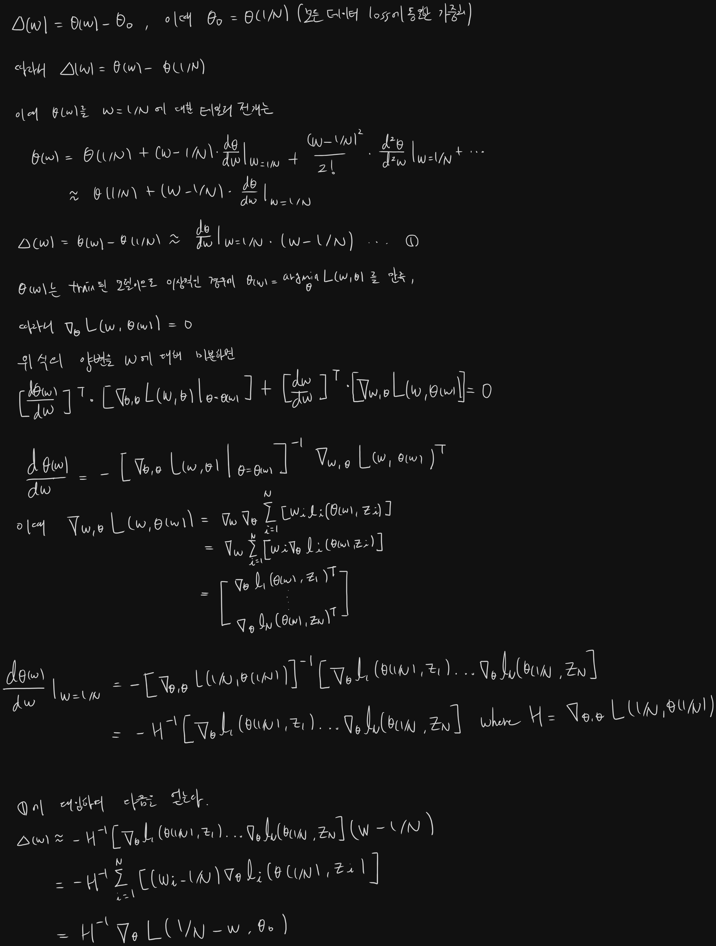 Δ(w):=θ(w)−θo≈H−1∇θL(N1−w,θo)