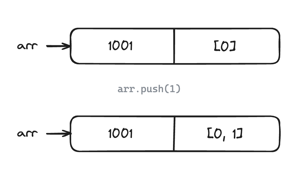 불변성 X : 메모리에서 값이 바로 바뀜