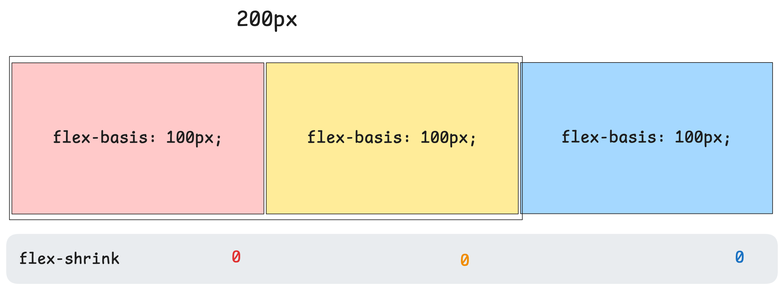 이번엔 flex-shrink 1 / 0 / 3 만큼 준다고 가정해보자