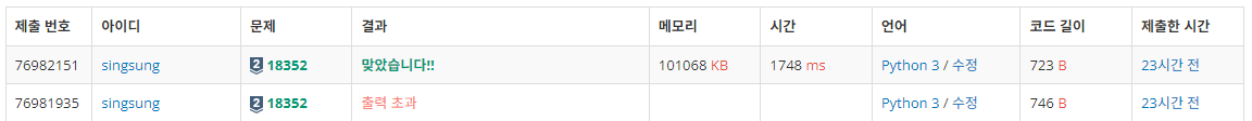 | 시간 제한 | 메모리 제한 | 제출 | 정답 | 맞힌 사람 | 정답 비율 |