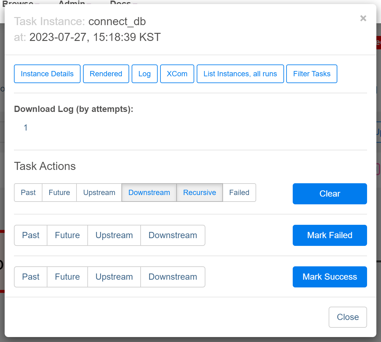 • 근데 계속해서 dag를 trigger하면 첫 task(db_connect)부터 에러가 발생해서 catchup = False, start_date = 오늘날짜 로 수정해주었다.