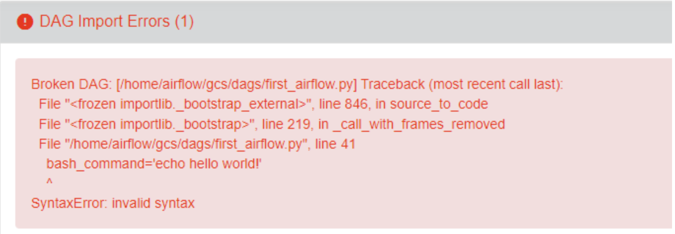 위와 같은 오류가 뜨면서 webserver dag 목록에 내가 작성한 dag가 뜨지 않는다.