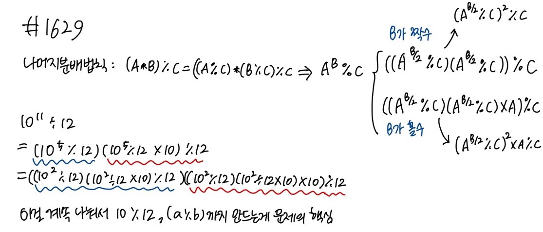 이 문제를 풀기 위해선 나머지 분배 법칙과 지수법칙을 알아야 한다.