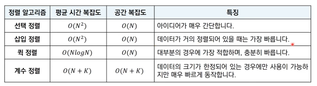 일반적으로 문제 상황에 따라 적절한 정렬 알고리즘이 공식처럼 사용됨