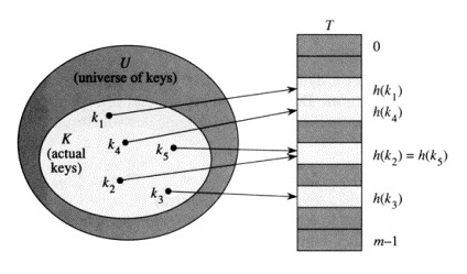 하지만 Hash Table은 "충돌(collusion)"이 일어날 수 있다는 문제점이 존재한다. 위의 사진에서와 같이 다른 k값인 k2와 k5의 해시값이 동일한 경우이다. h(k2)=h(k5), 이러한 충돌을 최소화하는 것이 Hash Table에서 중요한 문제이다.