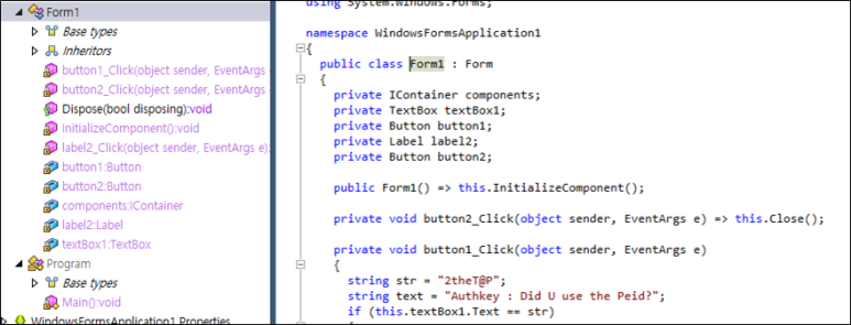 .NET Framework로 만들어져있다. dotpeek으로 디컴파일한다.