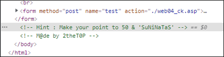 html 소스를 보면 Hint가 나와있다.