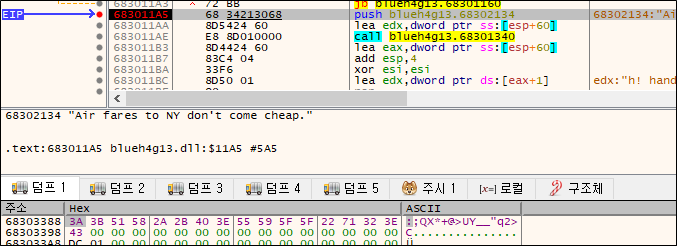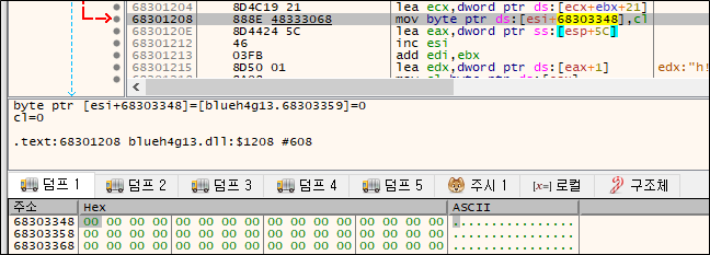 0x68303388에 cl값을 넣으니 해당 주소로 가본다.