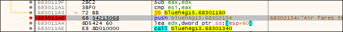 그리고 while이 끝나는 지점에 bp를 걸고, 0x68301188은 bp를 해제해보자.