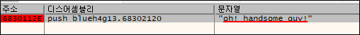 어떤 연산을 하는 지 모르니 동적 분석을 시도한다. 먼저 oh! handsome guy!문자열을 찾는다.